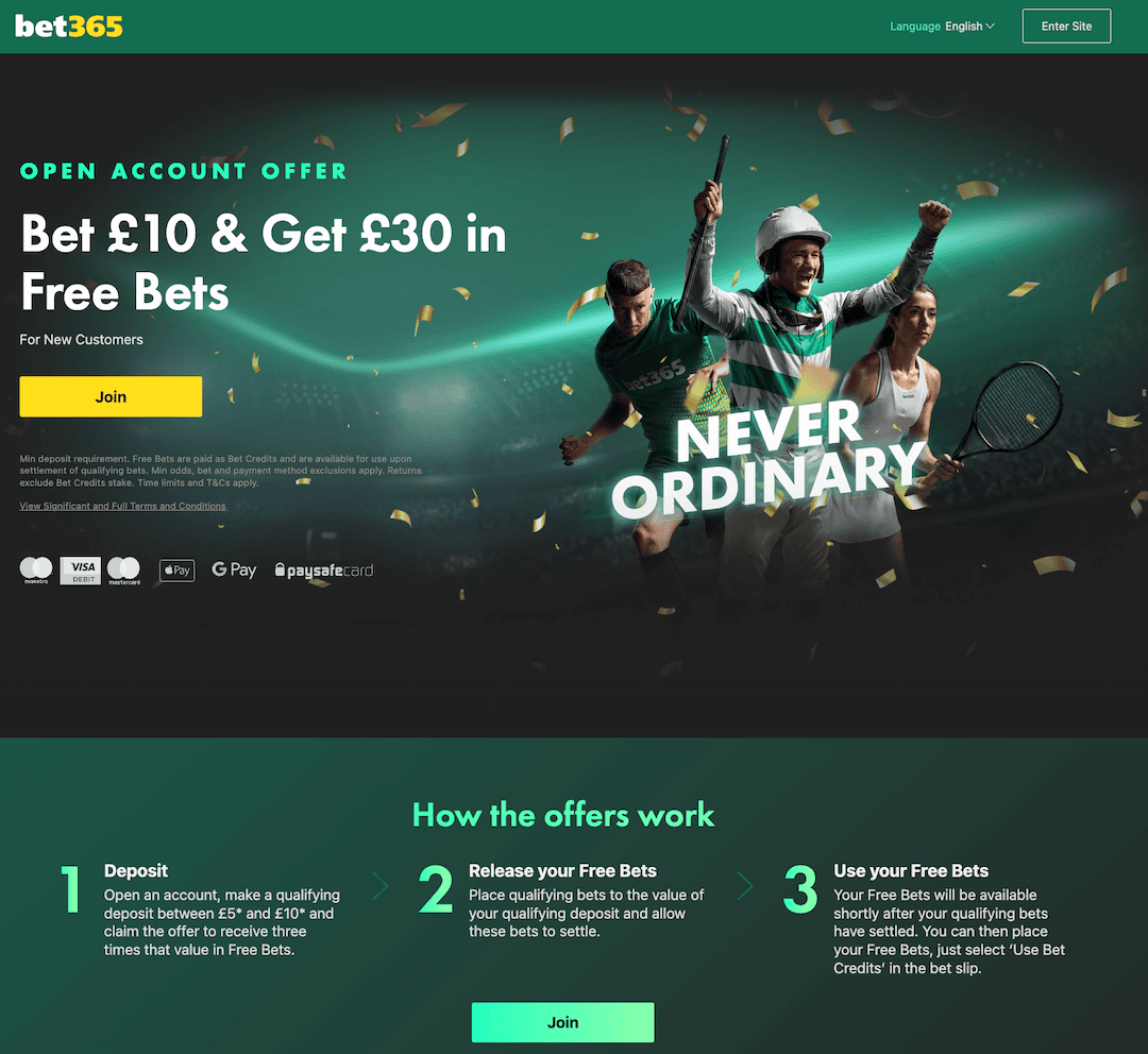 There are absolutely loads of different reasons to join up with Bet365, aside from the big free bet bonus for newcomers. Five of the main reasons to sign up with Bet365 are explained below: